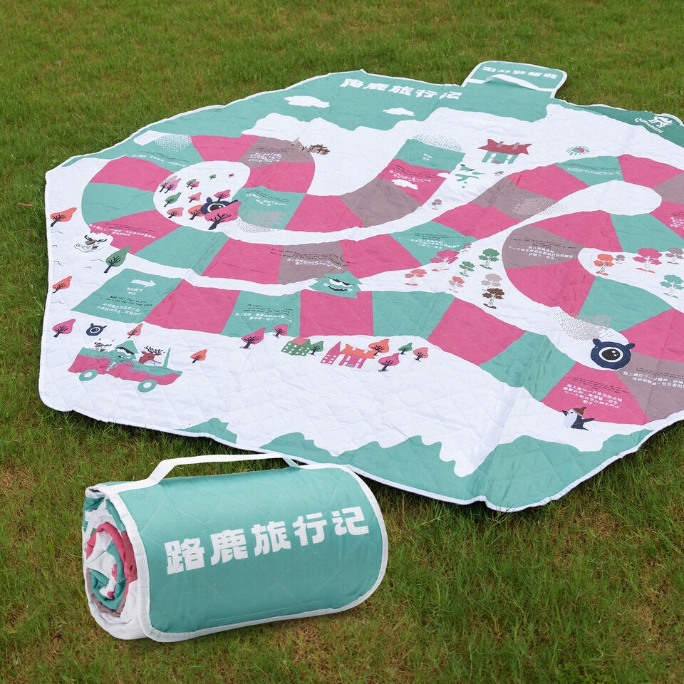 ✔ Kolor: jasnozielono-różowa mata piknikowa w kształcie heksagonu zawiera 8 żetonów i kostkę do gry