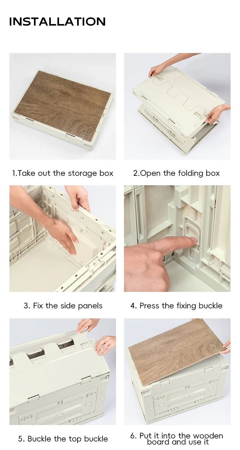 Wielofunkcyjna Pokrywa Drewniana:Górna część pełni funkcję stolika, deski do krojenia lub tacy. Dodatkowo, innowacyjna konstrukcja otwierana w 5 kierunkach umożliwia łatwy dostęp do zawartości – nawet w przypadku ułożonych pudeł.